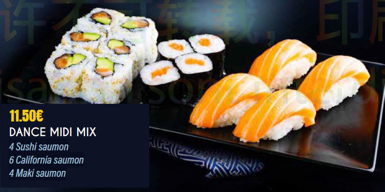 4 Sushi saumon, 6 California saumon, 4 Maki saumon