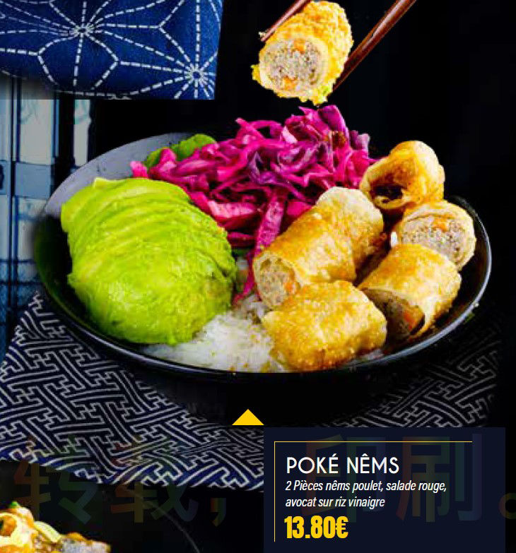 2 Pièces nêms poulet, salade rouge,avocat sur riz vinaigre